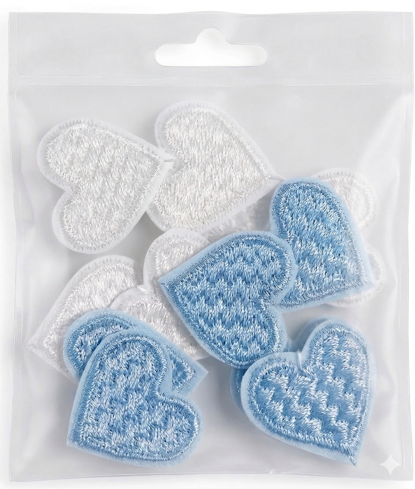Corazones Blanco y Celeste 2cm. Paq. 12 surt.